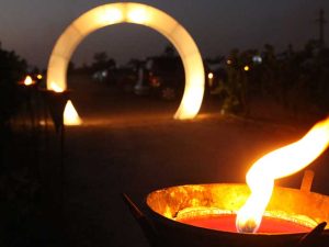 לפידים עם סטנד מסמנים שביל גישה לאירוע.